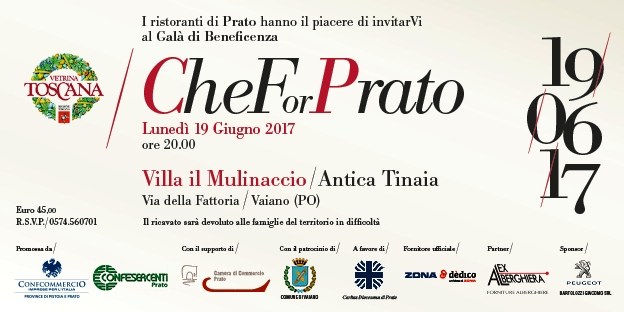 Vi invitiamo al Galà di beneficenza “CheForPrato“, che si terrà lunedì 19 Giugno presso la Villa il Mulinaccio di Vaiano.